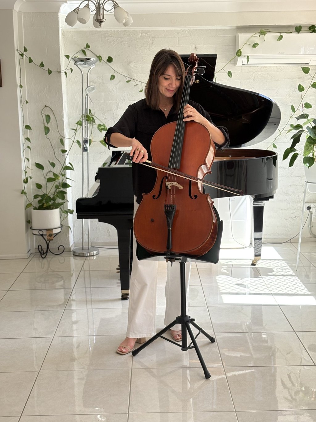A New Presence for Solo Cellists. Perform standing with confidence, achieving equal visual and acoustic balance with piano or orchestra.